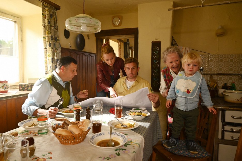 Familienessen bei Eberhofers („Guglhupfgeschwader"): Oma Eberhofers (Enzi Fuchs, Mitte) Kochkünste sind krisenfest. Flötzinger (Daniel Christensen), Papa Eberhofer (Eisi Gulp), Franz.