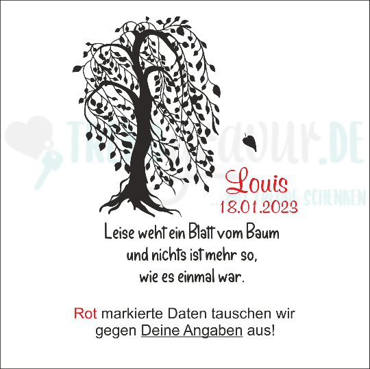 personalisiertes Trauerlicht Erinnerungslicht Leise weht ein Blatt vom Baum und nichts ist mehr