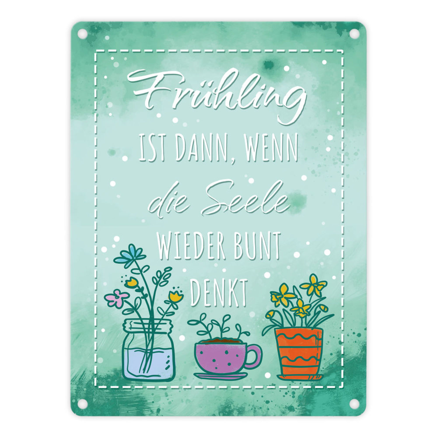 Frühling ist dann, wenn die Seele wieder bunt denkt Metallschild in 15x20 cm bei trendaffe.de