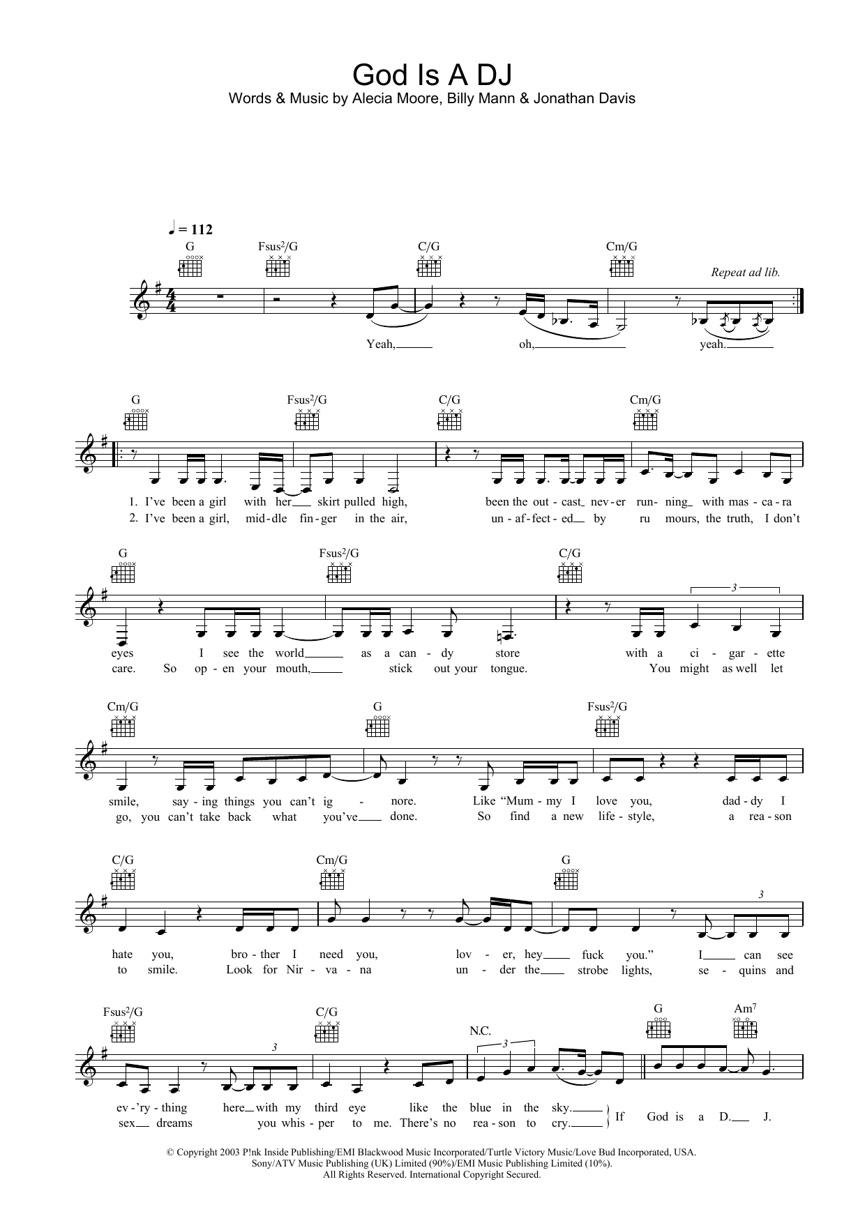 Pink "God Is A DJ" Sheet Music Notes Download Printable PDF Score 31642