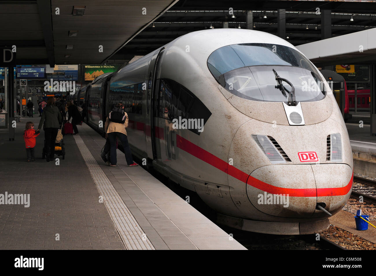 InterCIty Express / ICE il treno alla Stazione di Monaco, Monaco di Baviera, Germania Foto stock