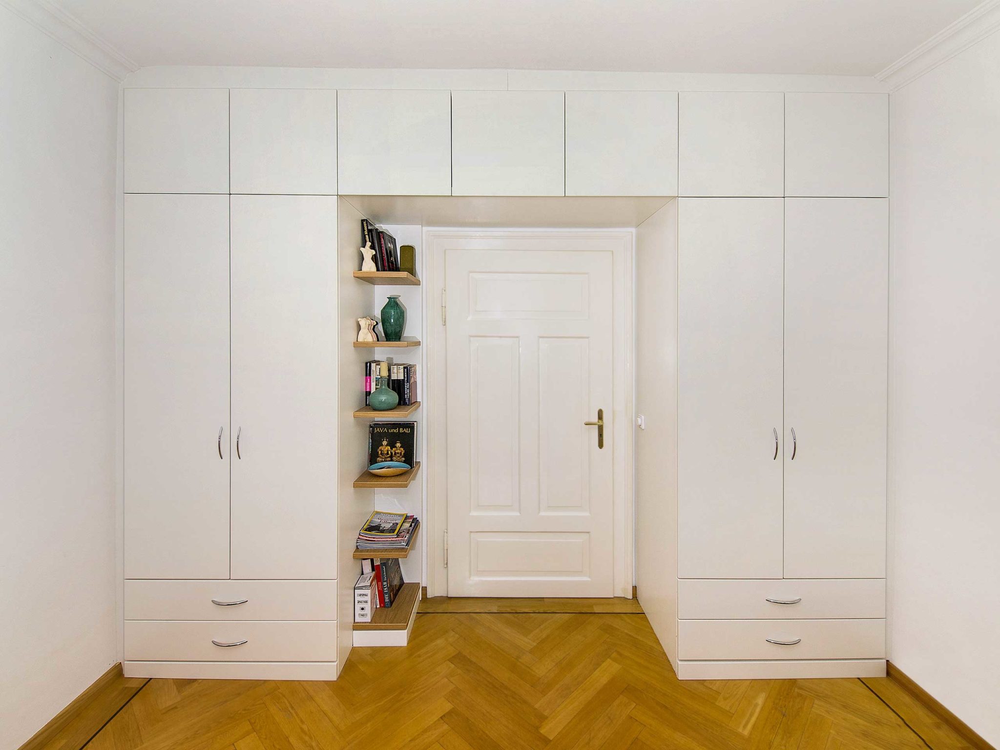 Türüberbau nach Maß. Lassen Sie sich kostenlos und unverbindlich zu einem Türumbau mit Regalen oder Schränken beraten. Auf Wunsch fertigen wir Türüberbauten aller Art exakt an. "Planen Sie ein Regal oder einen Schrank um eine Tür herum oder integrieren Sie diese.