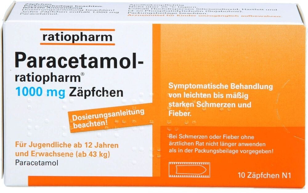 Was das hierzulande bedeutet. zum Artikel. In diesem Beipackzettel finden Sie verständliche Informationen zu Ihrem Arzneimittel - unter anderem zu Wirkung, Anwendung und Nebenwirkungen. Wählen Sie eines der folgenden Kapitel aus, um mehr über "PARACETAMOL-ratiopharm 1.000 mg Zäpfchen" zu erfahren.